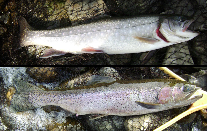 “Om 06.30u arriveren we aan het Oostvoornse Meer, afslag Baardmannetje! De ochtend is nog jong en er is geen enkele andere visser te bespeuren. Ik probeer een paar uur met de droge vlieg en krijg zowaar 2 aanbeten, of iets wat daar op lijkt. Eén aanslag is helemaal mis en de tweede vis (redelijk formaat!!) lost na enkele acrobatische sprongen. Daarna is er niks meer te zien. Dan maar overschakelen op een zonkertje met een zinkende lijn en vissen aan de buitenkant van de dammetjes. Bij ‘Baardmannetje’ 2 vissen gevangen: een beekridder en een mooie, oude, zwarte en magere regenboog! Na de middag ben ik verhuisd naar het strandje aan de overkant van het ovm. Lekkere picknick samen met het vrouwtje en 1 aanbeet gehad maar deze kleine regenboog verspeeld. ‘s Avonds nog enkele uurtjes geprobeerd bij het Baardmannetje. Met de droge vlieg heb ik niks meer gezien. Nog enkele worpen met een streamertje leverden nog twee aanbeten op en evenveel missers!!! Jammer!!! Zwarte onweerswolken komen dan vanaf de zee opzetten. Het weerlicht aan alle kanten. Wij kijken ernaar maar zitten lekker binnen te genieten van een heerlijk etentje in het ‘Wapen van Marion’. Wat wil een mens nog meer!!”