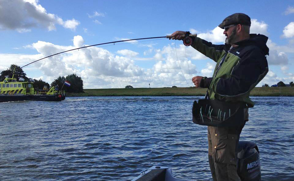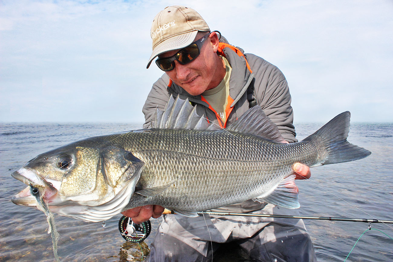 Cornelis heeft zich in de loop van de jaren laten zien als een vliegvisser die steeds een stapje verder durft te gaan, iets wat ons zeer aanspreekt en waarvoor we respect hebben. Want wees eerlijk – kijk naar de foto’s – niet iedereen is zo gek om op volle zee met een bellyboot achter de zeebaars te gaan. En ik kan je zeggen dat op die stekken ook nog een behoorlijke stroming staan, bikkelwerk dus. Maar daardoor komt hij op stekken waar de echte grote jongens liggen en dat bewijst hij ook regelmatig met een van zijn vele mooie foto’s. Wil je mooie vissen vangen aan de vliegenlat, dan zul je regelmatig – of het nu in het binnenland, of in het buitenland is – net dat stapje verder moeten durven zetten. Pas dan kom je daar waar je wezen moet en de resultaten zullen daar zijn.