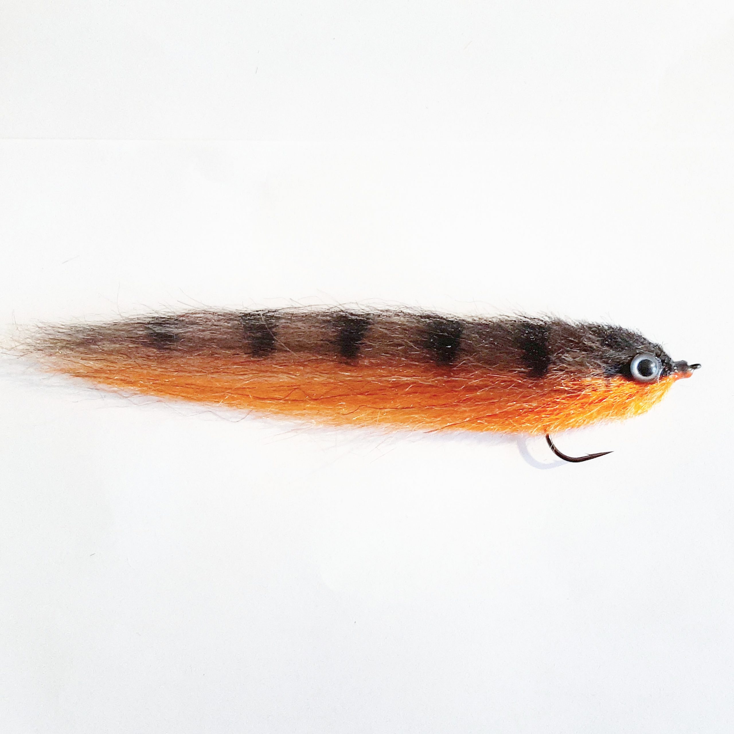 Pikestreamer made with Dyckers Fibers Soft Hot Orange & Dark Brown on a new Dyckers hook 6/0. Length: 19cm