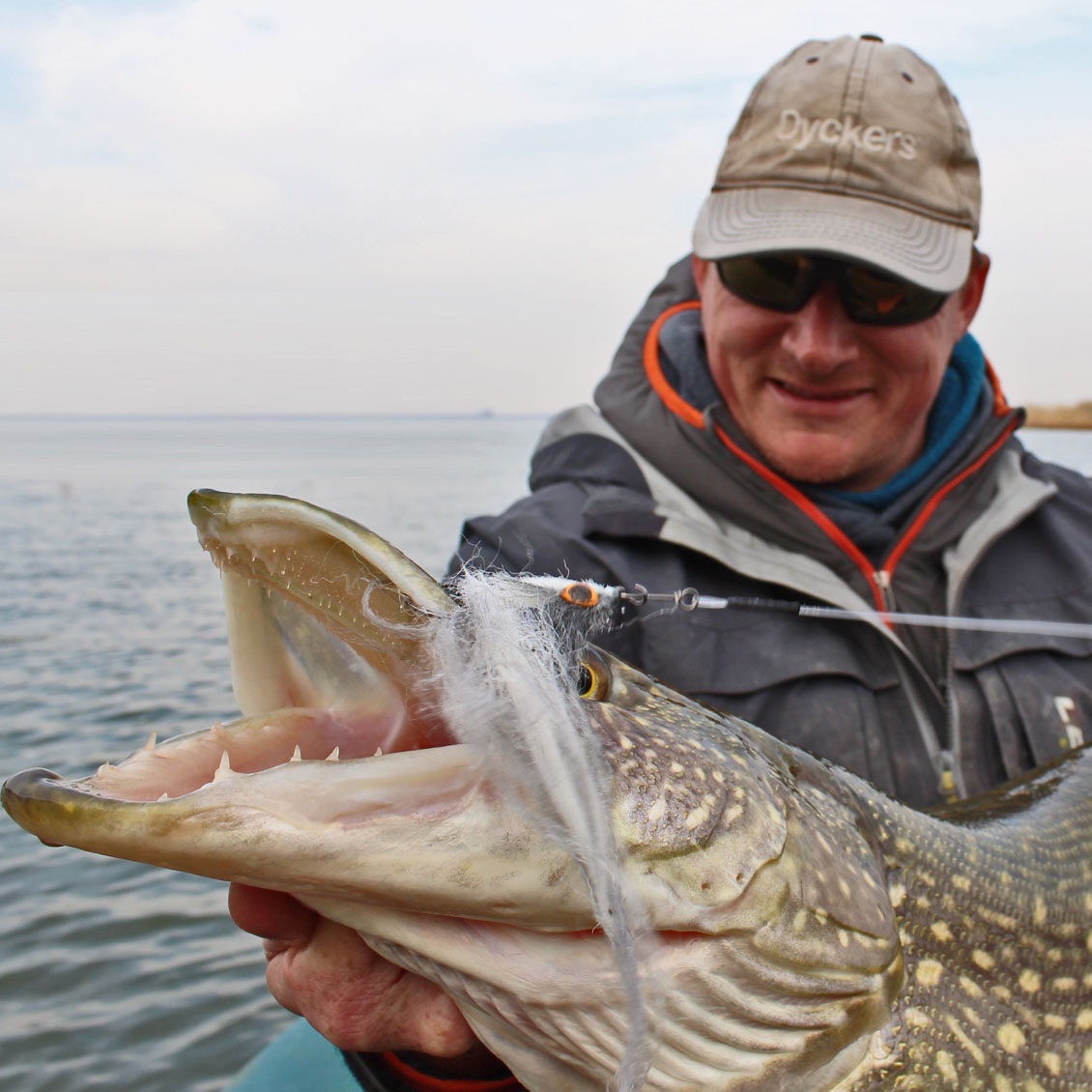 Next to the Black One the number two pikestreamer from Edwin. 18cm long. Gamakatsu worm hook 6/0. Of course tied with Dyckers Fibers Soft and Dyckers Eyes!