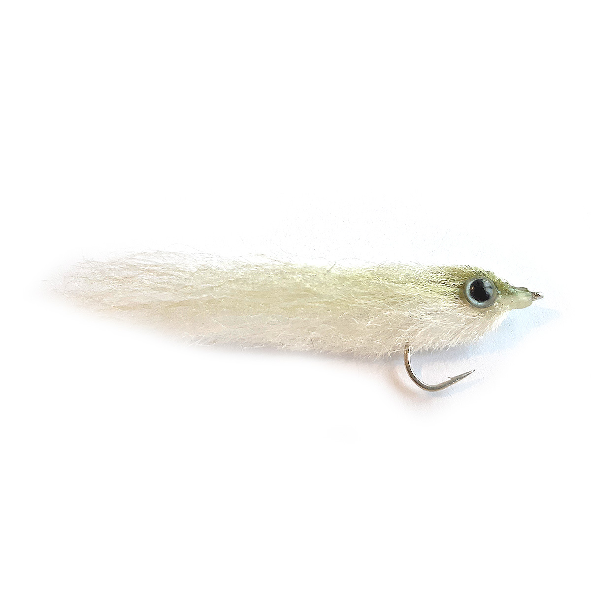 Great streamer for Asp, Perch, SeaBass, Seatrout and more. Tied with Dyckers Fibers Soft White and Mixed Olive, Dyckers Eyes Silver 6mm & the ultra sharp and strong Gamakatsu SC15 1/0 hook. Length 8cm