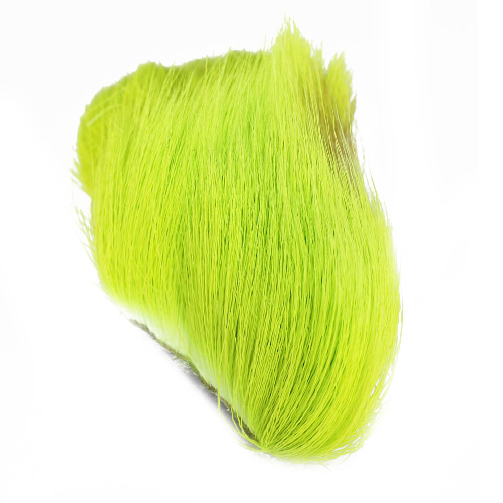 Multicoloured heads are possible with this supurb dyed deer belly hair. Ideal for frog, fry, bass and pike flies. Also good for (big) muddlers. Pieces cut to approximately 90mm x 90mm.