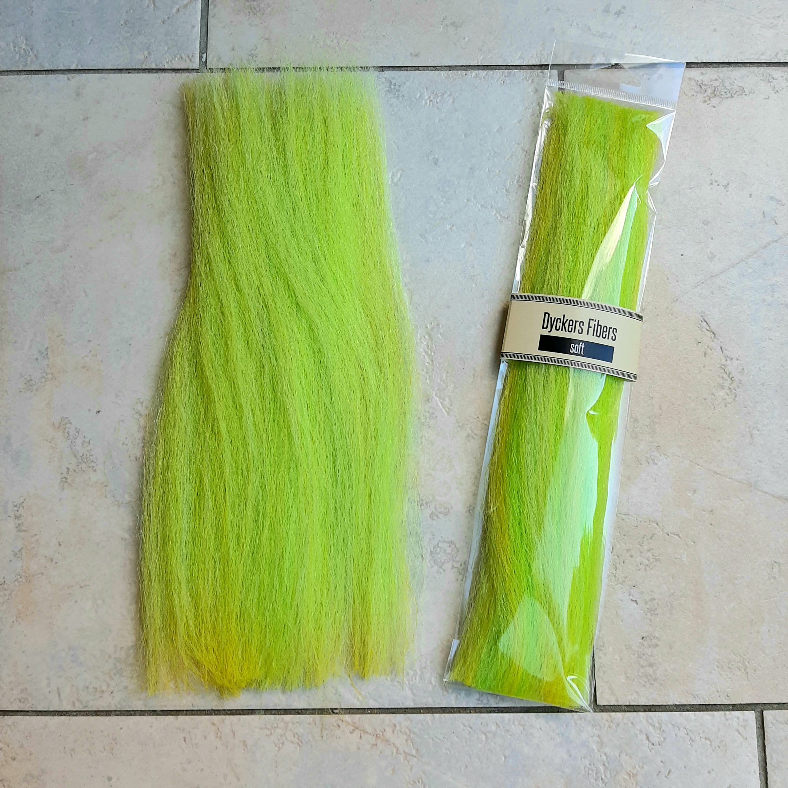 Such a great colour of the Dyckers Fibers Soft: Yellow Chartreuse. One of our succesfull pikeflies the Kermit is made with this colour.